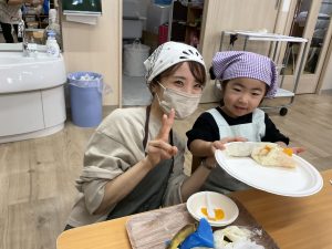 9月22日に親子クッキングを行いました♪6組のご家族が参加してくださり、2種類のクレープを作りました!