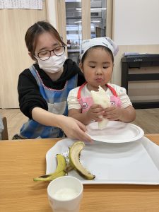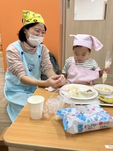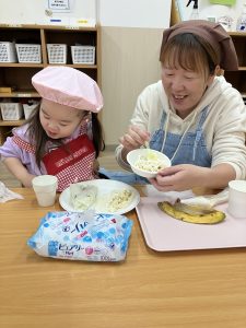 出来上がると『おいしそう♡』と笑顔になっていた子どもたち。