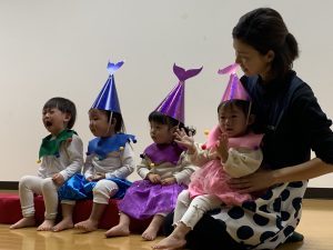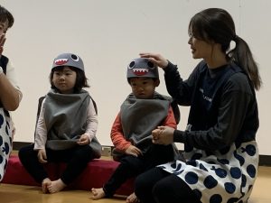 次は、ちいさなおさかなになりきって「Baby Shark」を披露。