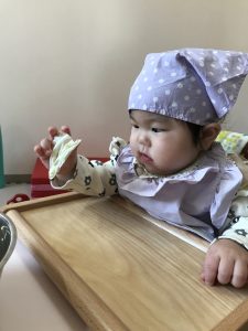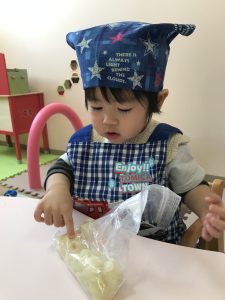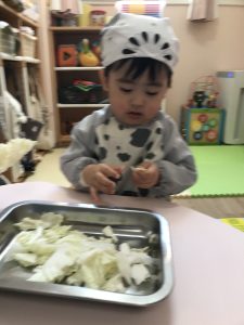Rabbitクラスの食育で白菜のおやきを作りました。