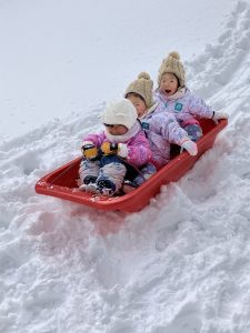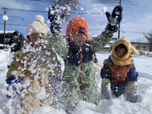 大人は雪かきが大変ですが、子どもたちは雪に大喜び♪雪遊びを楽しんでいます。