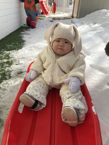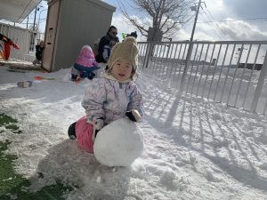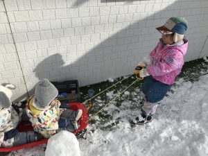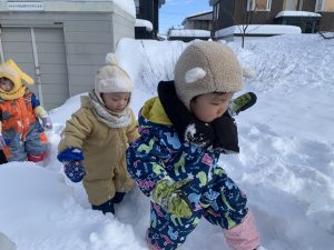 Rabbitクラスのお友だちも寒さに負けずに園庭で雪遊び!