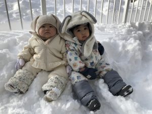 1月に入り、「全然雪が積もらないね~」「雪が降らなくて雪遊びができないね~」なんて話していると…