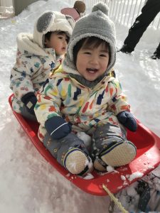 Giraffeクラスでは雪の上を思い切り走ったり、雪だるまを作って冬ならではの遊びを満喫中です(^_-)-☆